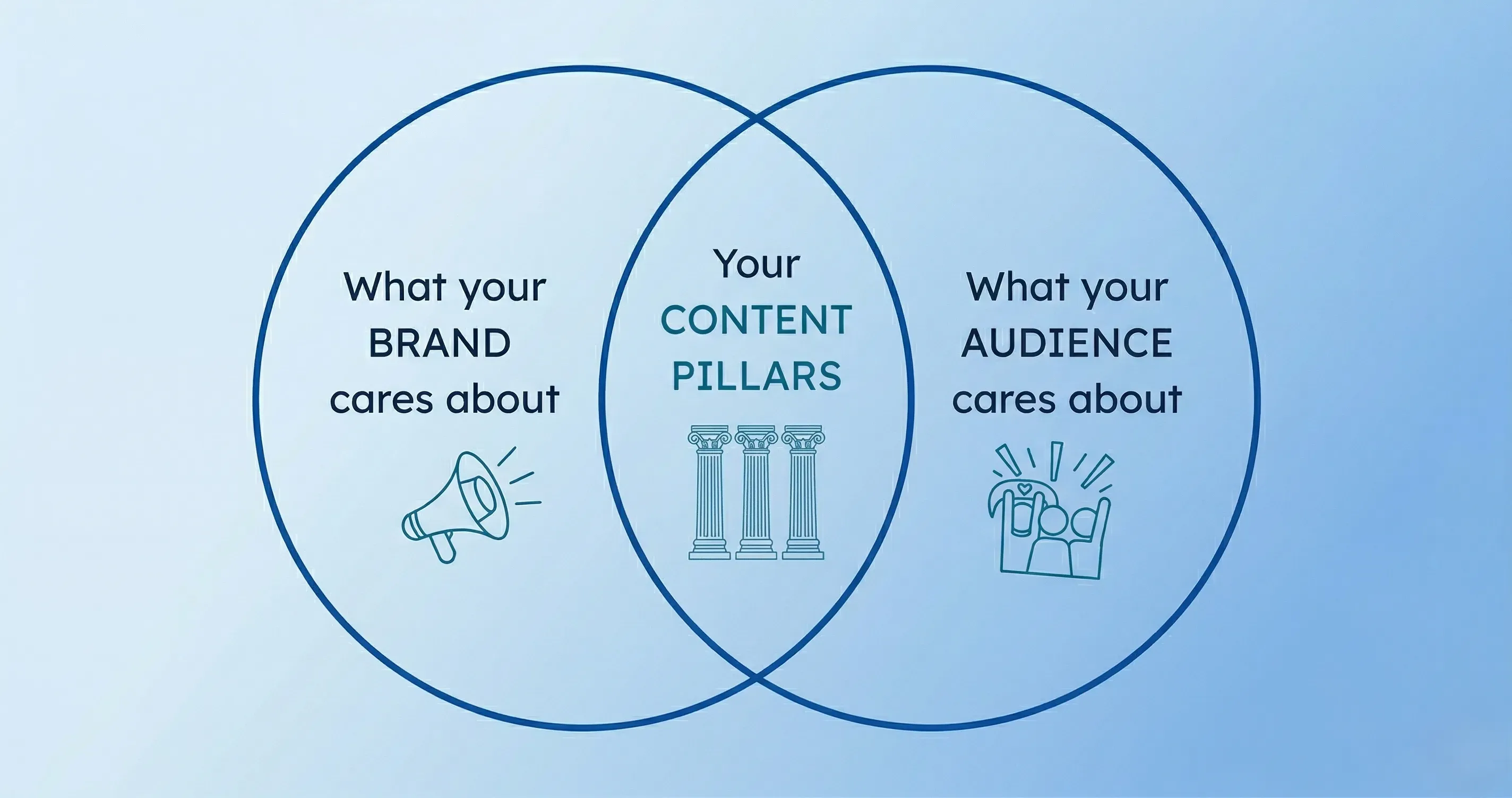 Content pillars are the recurring themes your brand talks about. They prevent the two most common content strategy failures: running out of ideas and becoming irrelevant to your audience.