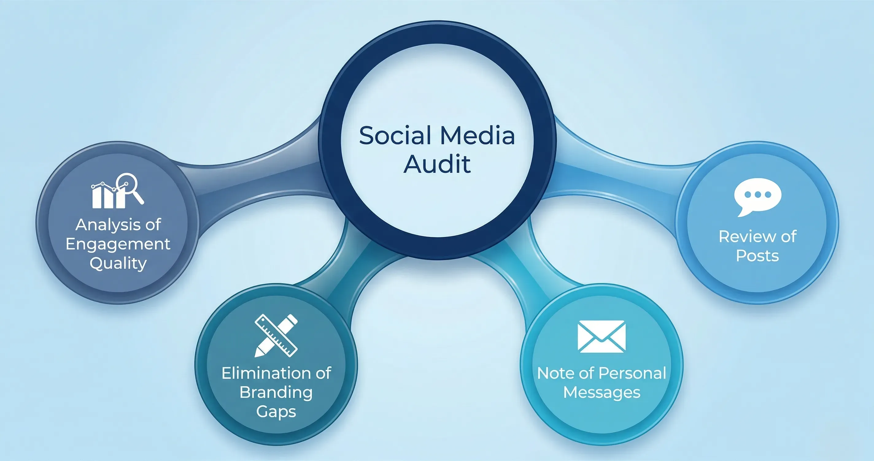 If you already have social accounts, even dormant or underperforming ones, audit them before building anything new. A social media audit is a comprehensive review of your current social media presence, including profile optimization, content performance, audience growth, and competitive positioning across all your social channels. It establishes your baseline and reveals immediate opportunities for improvement. Neal Schaffer